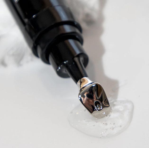 Sau khi làm sạch da vùng mắt, dùng đầu lăn kim loại thoa vùng quanh mắt và massage bằng đầu kim loại để dưỡng chất Revision Skincare Revox Line Relaxer nhanh chóng thấm sâu vào da