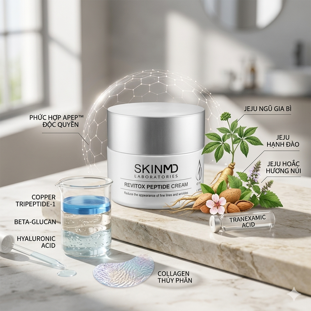 SkinMD Revitox Peptide Cream với phức hợp APEP™ chứa 9 loại peptide tinh khiết