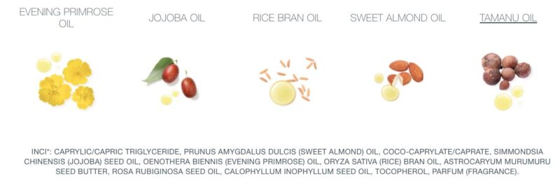 Cám gạo và dầu Tamanu, giàu Omega 3 : giúp nuôi dưỡng và trẻ hóa đồng thời cải thiện độ đàn hồi